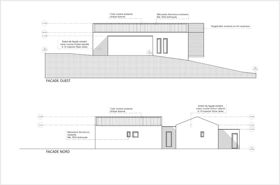 La conception de la villa L repose sur deux volumes simples, adoptant un style architectural moderne et traditionnel en réponse aux attentes de nos clients. Les toitures en tuile canal vieilli, l'enduit blanc, ainsi que les éléments en bois tel que la terrasse et la pergola contribuent à créer une esthétique élégantes et harmonieuse.
